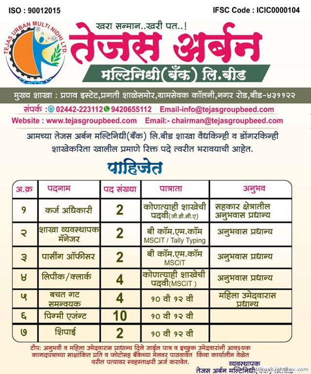 तेजस अर्बन बँक कॉ -ऑप क्रेडिट सोसायटी बीड